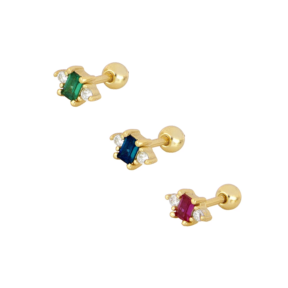 Pendientes Zafiro en Plata de Ley 925 Chapado en Oro de 18k